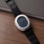 La nueva esfera 'lino' ofrece un relieve profundo que reproduce las fibras cruzadas de la famosa tela. Un acabado más cercano a la orfebrería que al tratamiento de superficie, al que el tono ‘Pizarra’ aporta reflejos matizados que van del azul al gris y conserva toda la elegancia discreta, sello distintivo de la 'Parade'.