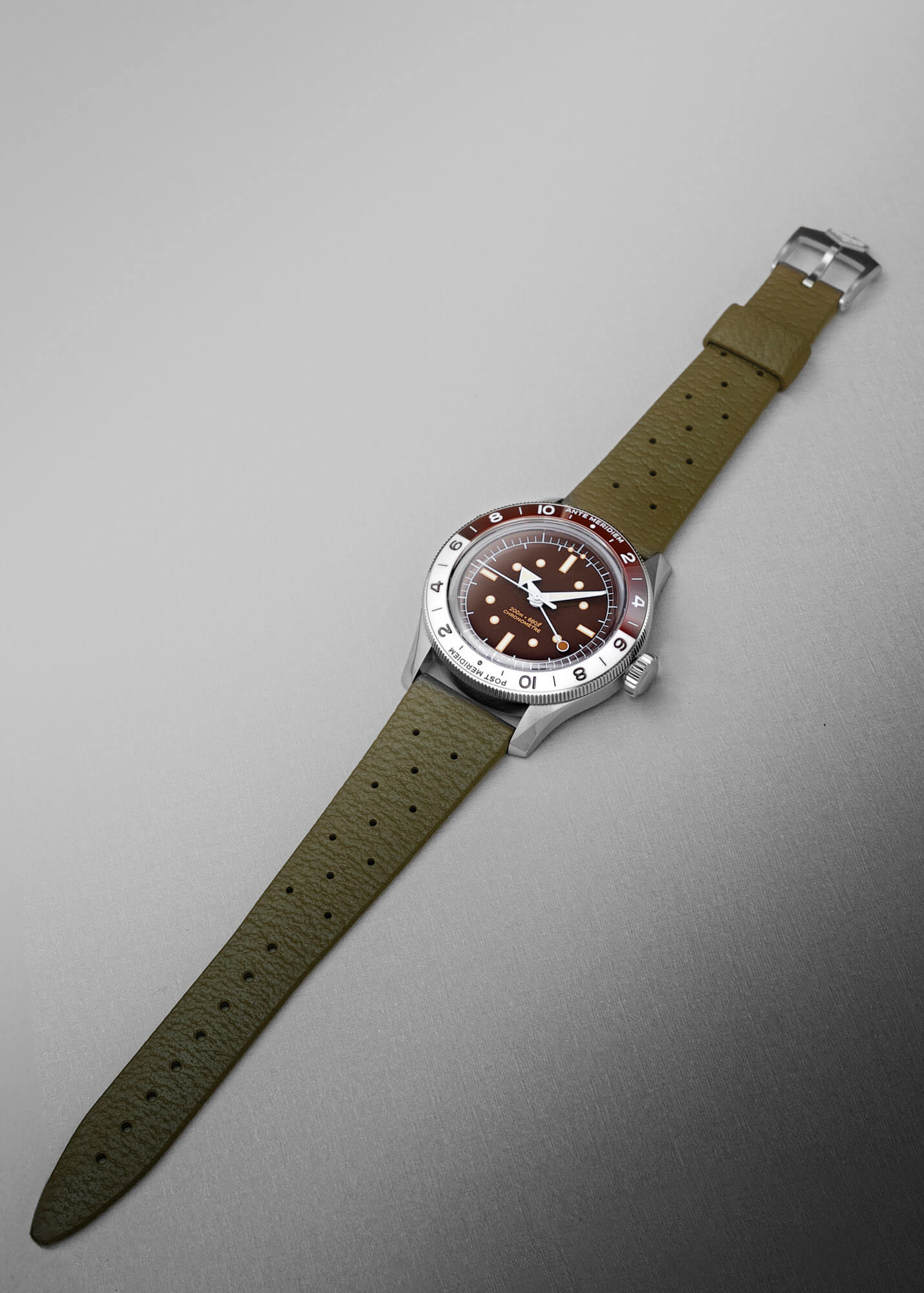 La singularidad del grabado de su bisel 24h y de su aguja GMT ‘Lollipop’ se combina con el esmalte, la cerámica y el zafiro para dar vida a un instrumento mecánico automático, certificado Cronómetro COSC y hermético a 20 bares. Bienvenidos al mejor de los dos mundos…