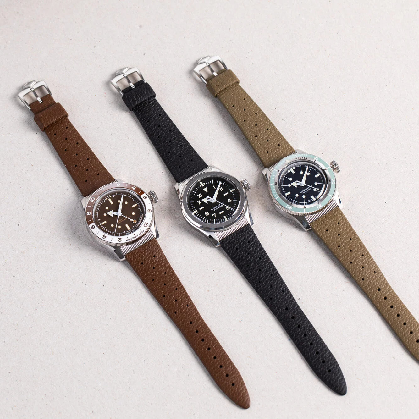 Con dos tamaños de hebillas en 14 y 16 mm, podrá vestir sus correas Serica de cuero o caucho, así como poner a su reloj otras correas con menor caída. Un mundo de posibilidades, siempre con la misma elegancia.