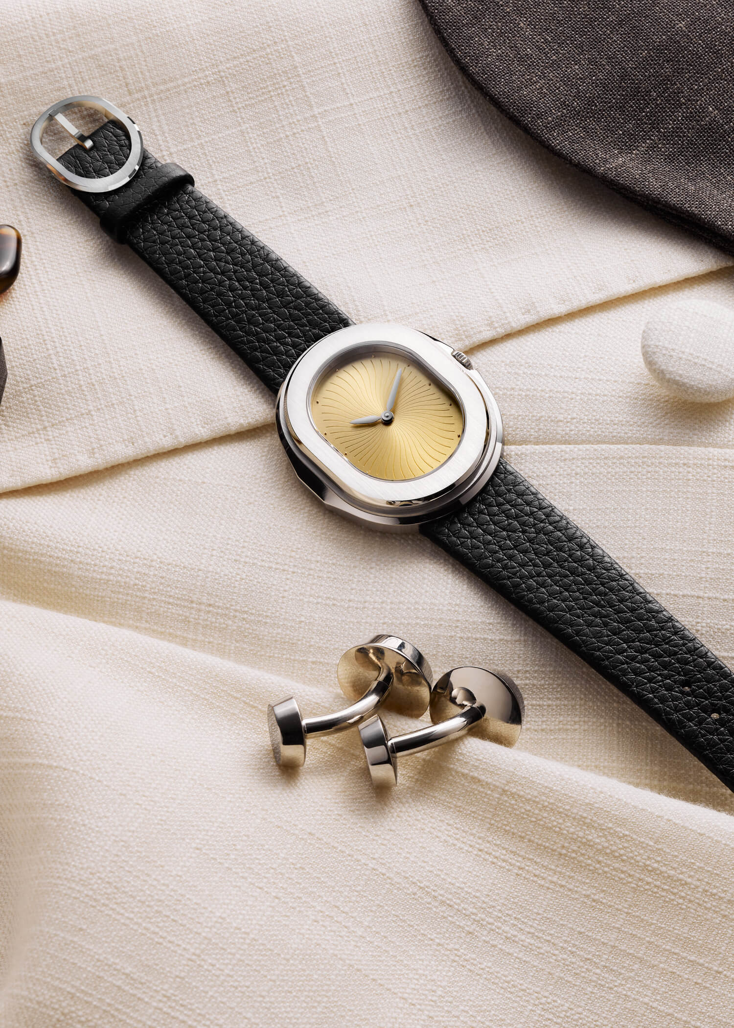 La raffinatezza non si esprime solo nella forma, ma anche nella lettura del tempo. Mostrando solo ore e minuti, la Parade si libera dal costante richiamo del tempo che scorre ininterrotto.