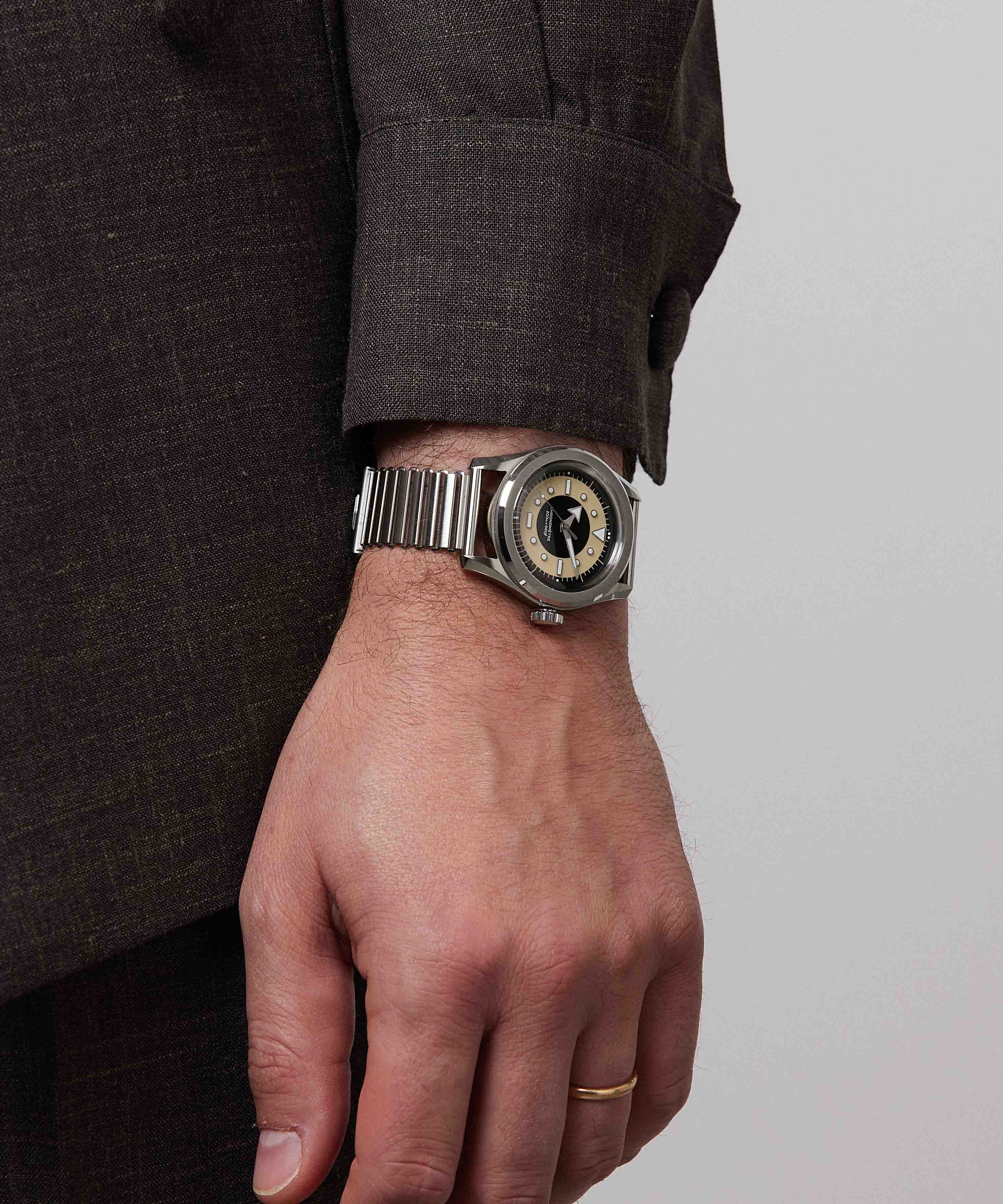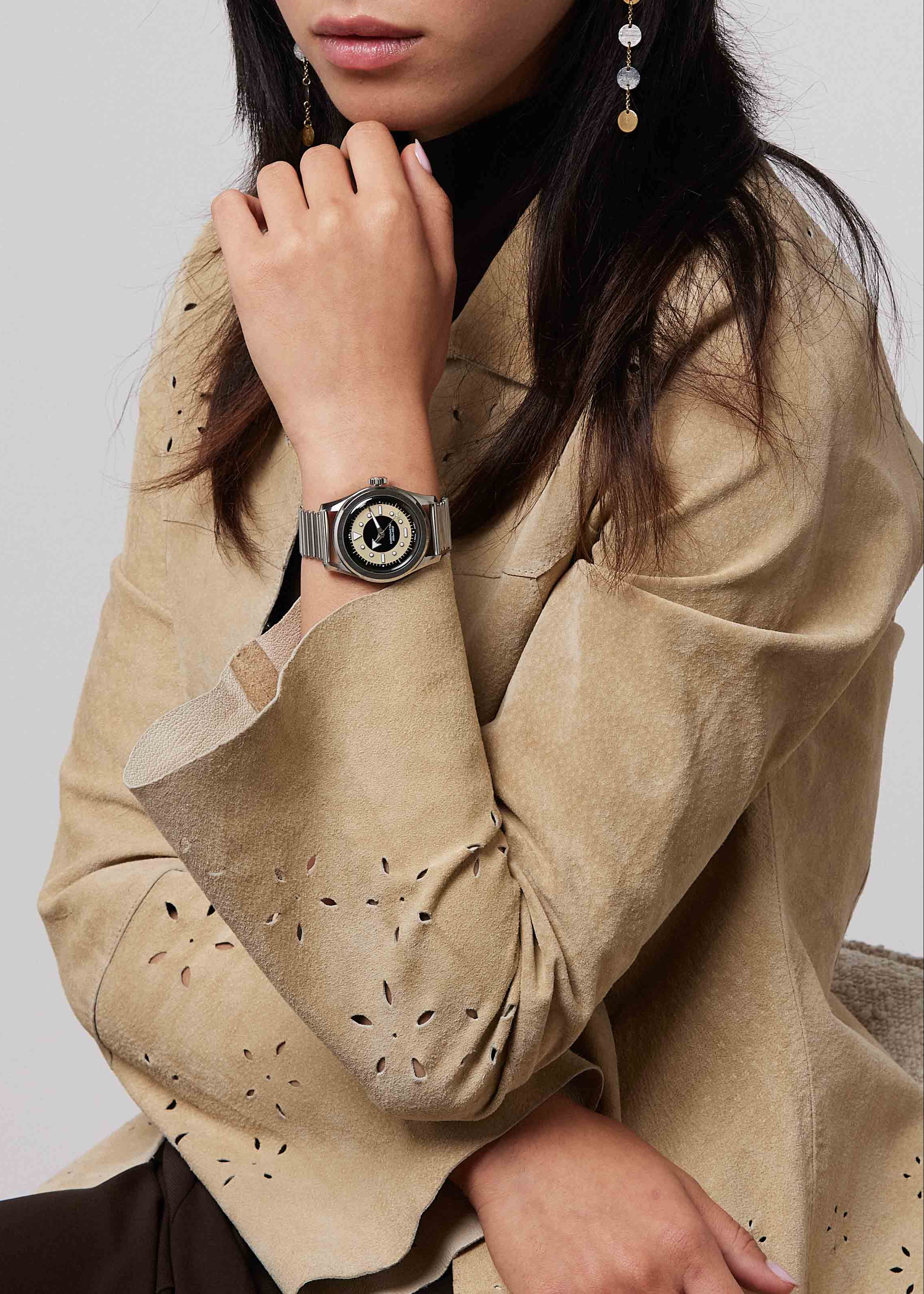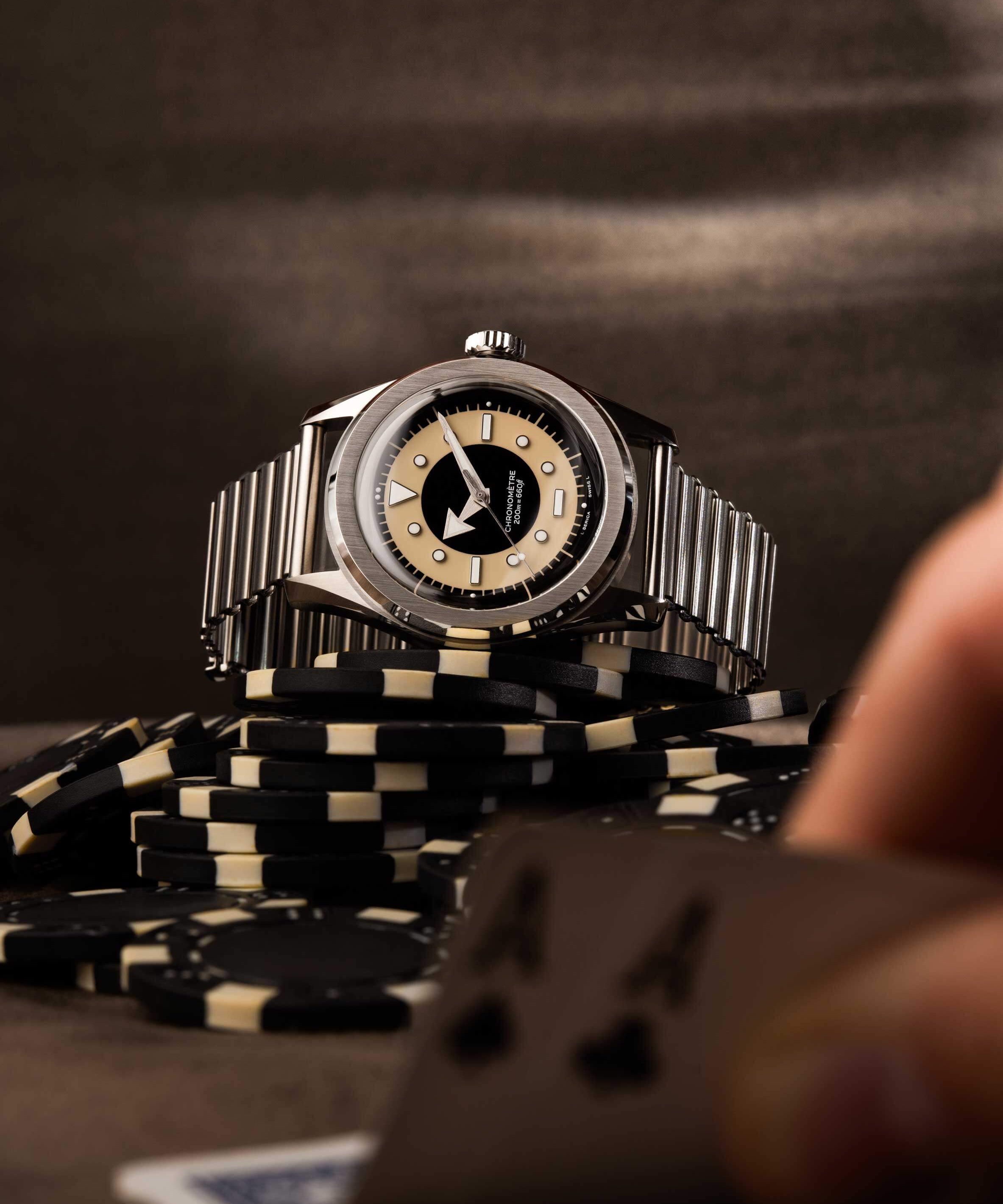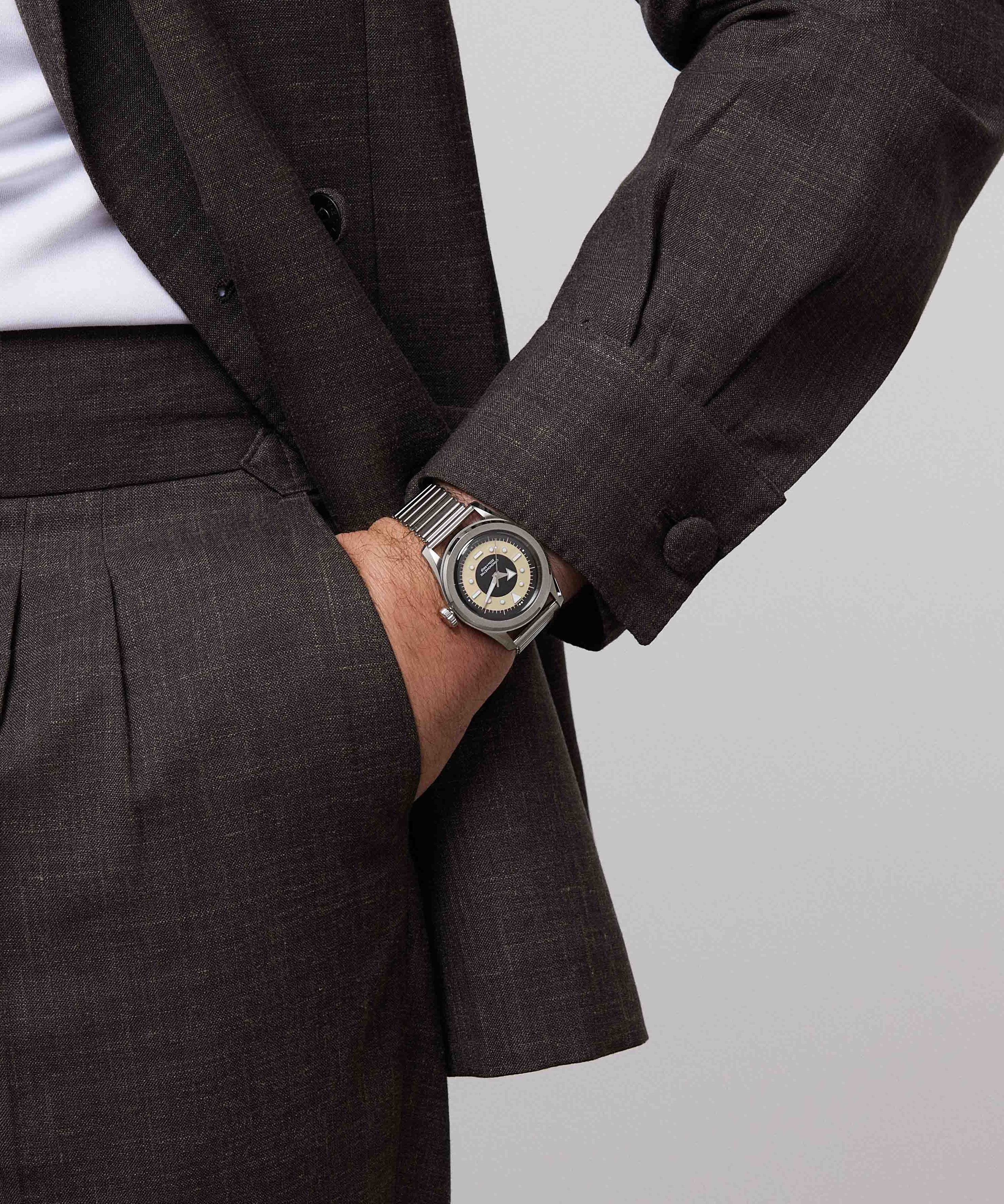 Cette nouvelle interprétation du cadran bi-ton, faisant apparaître une troisième couleur sur le secteur central offre un contraste fort et une parfaite lisibilité, sans jamais recourir à l’utilisation d’une patine artificielle, réaffirmant ainsi notre engagement envers une horlogerie résolument moderne.