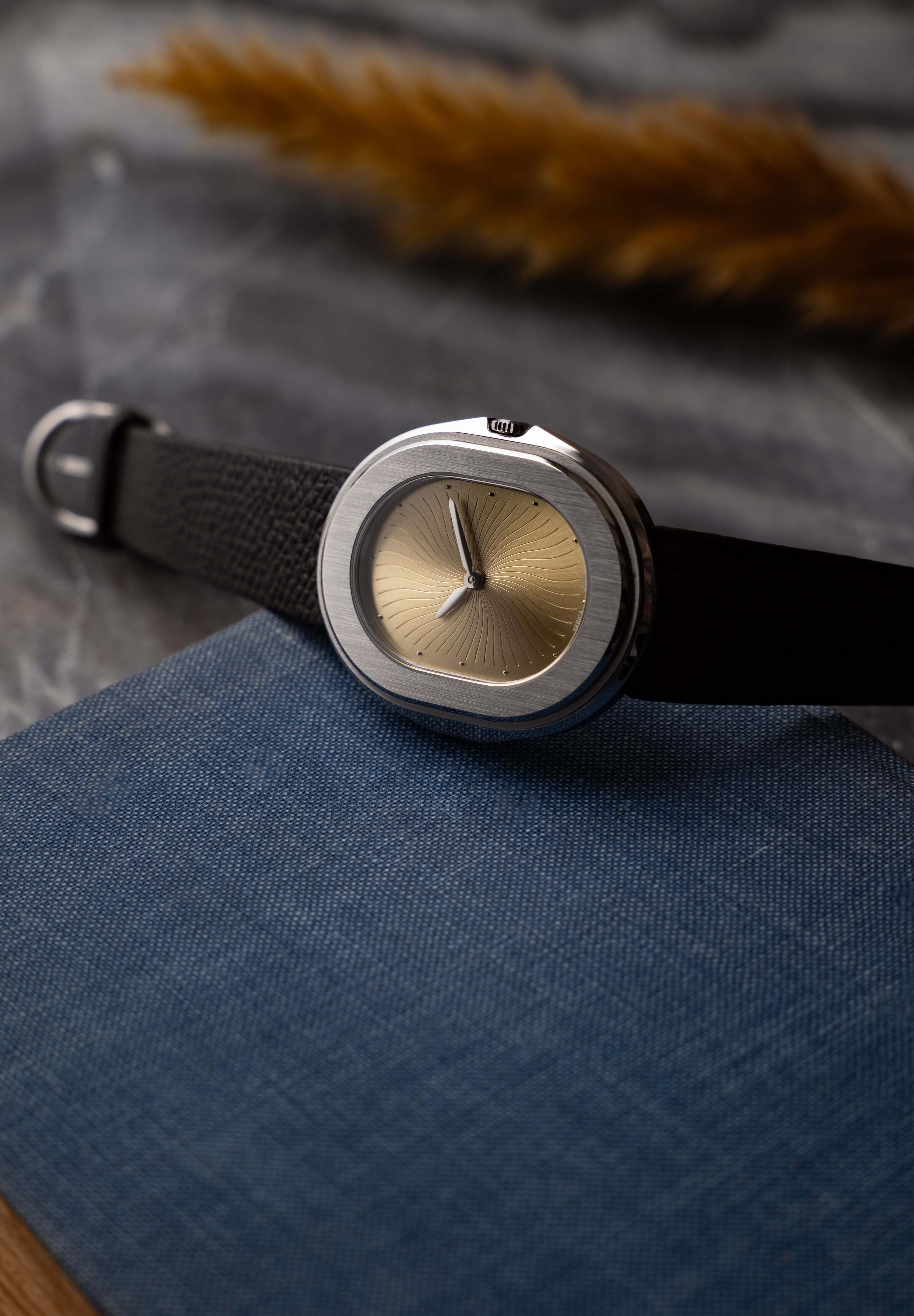 La référence 1174 ‘PARADE’ incarne une ambition, celle d’allier finesse, singularité des formes et haute-performances. Une montre automatique, étanche et fiable, qui ne ressemble à aucune autre et transcende le concept même de la montre habillée.